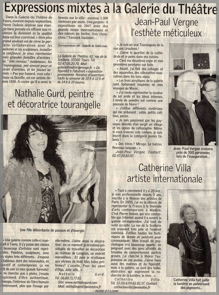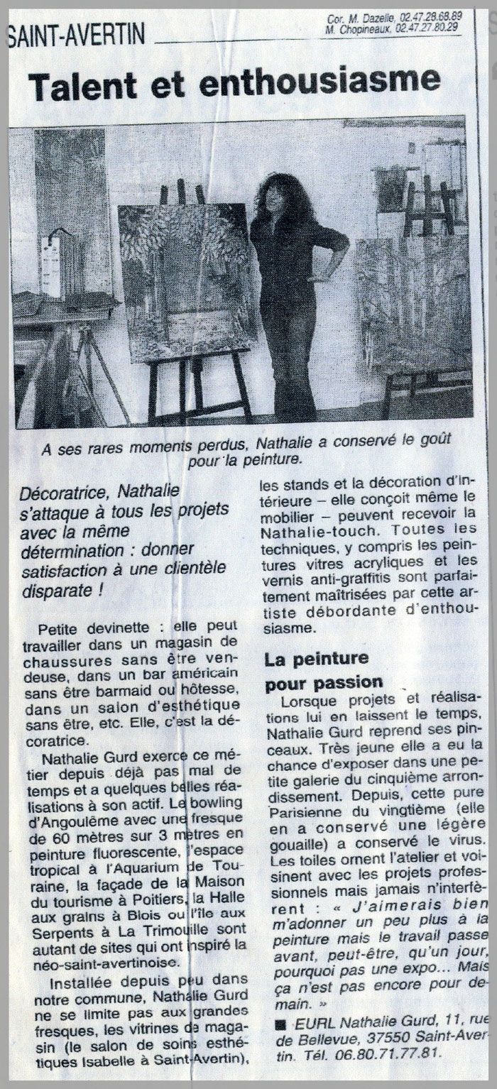 Articles de presse jalonnant la carrière d’artiste peintre de Nathalie Gurd