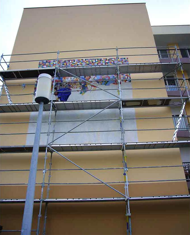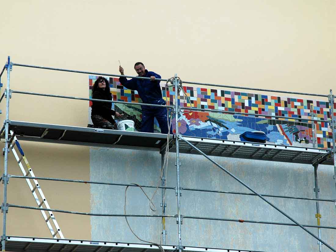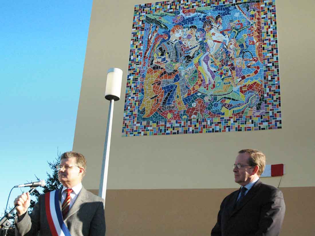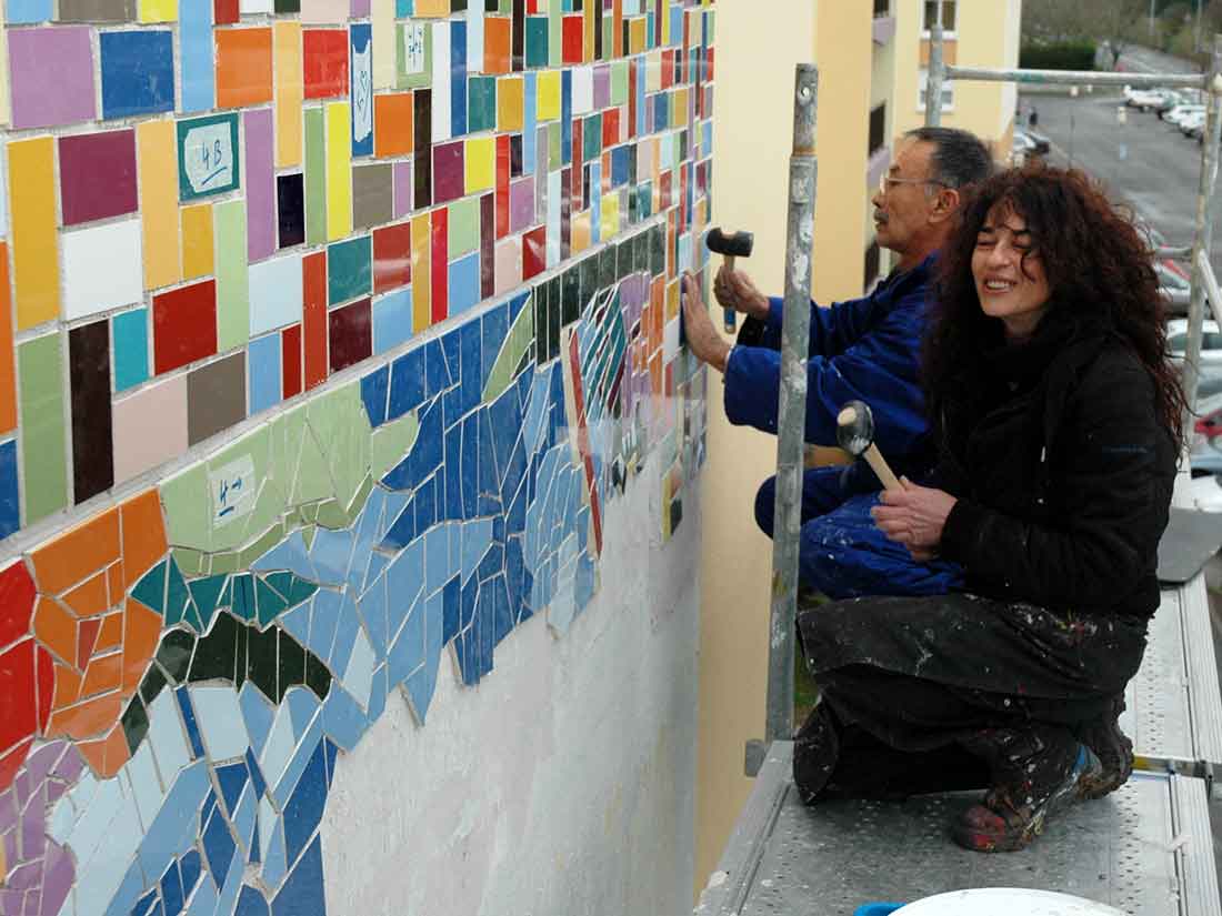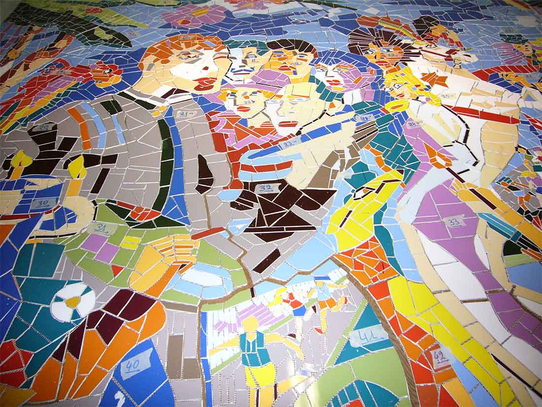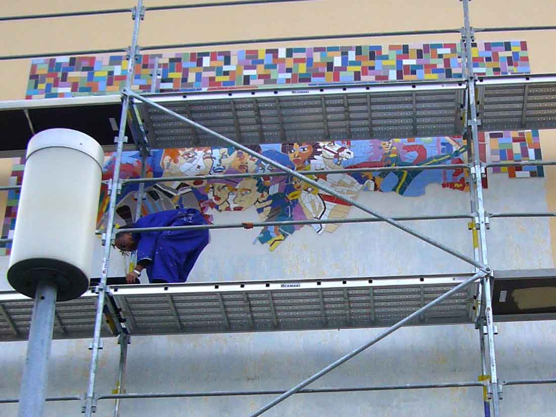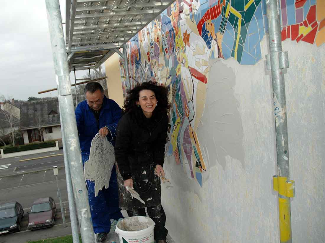 Surface: Fresque 15mx5m – 75m2. Mosaïque 50m2