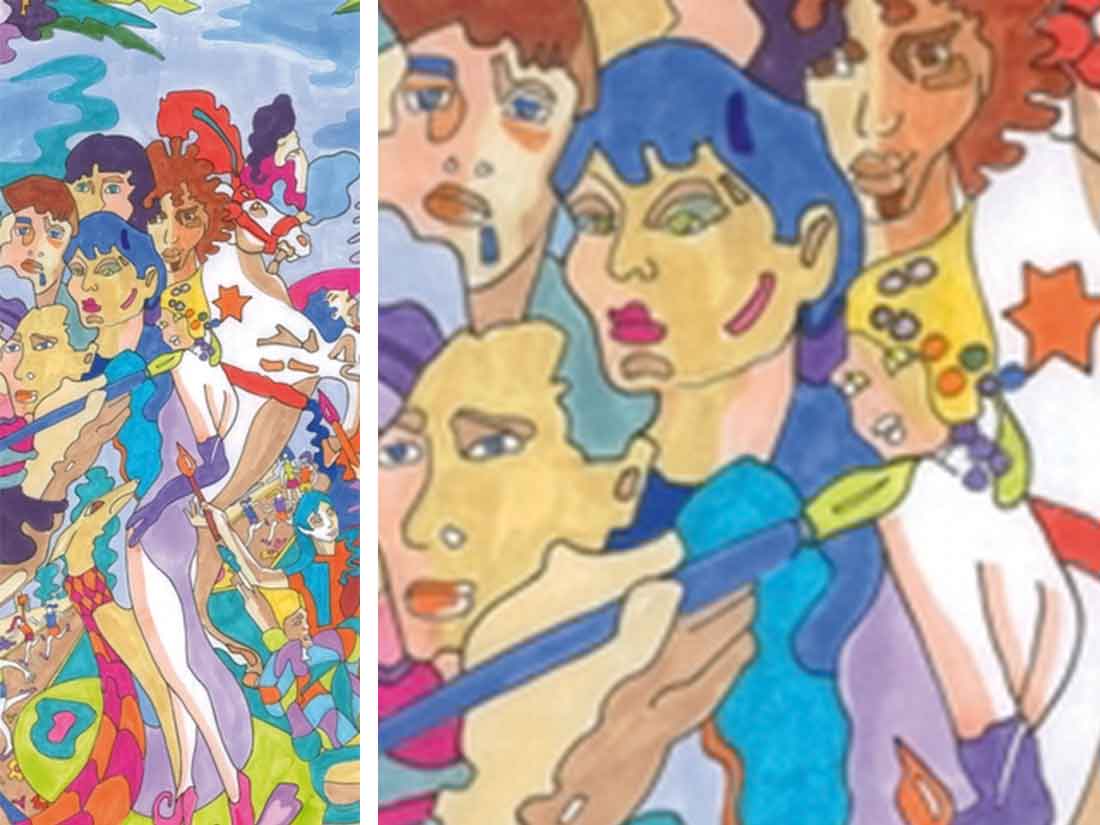 Techniques: Peinture acrylique verni polyuréthane anti graffiti UV, Mosaïque