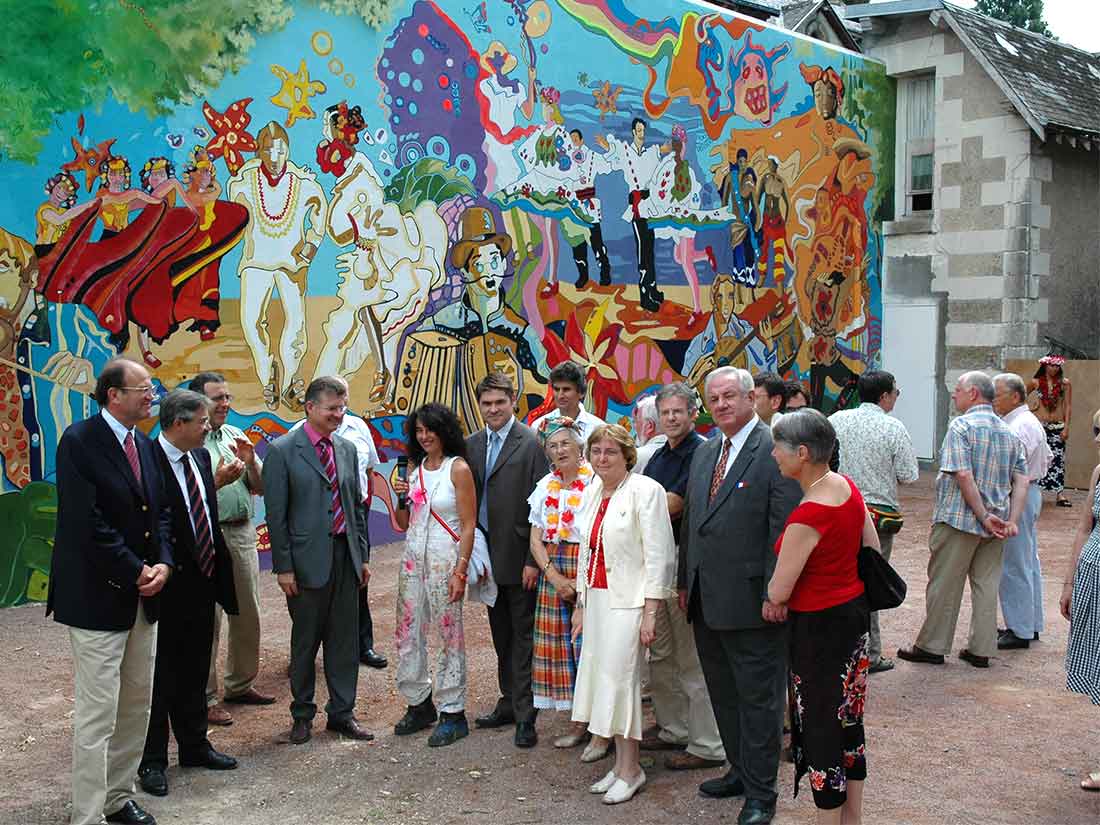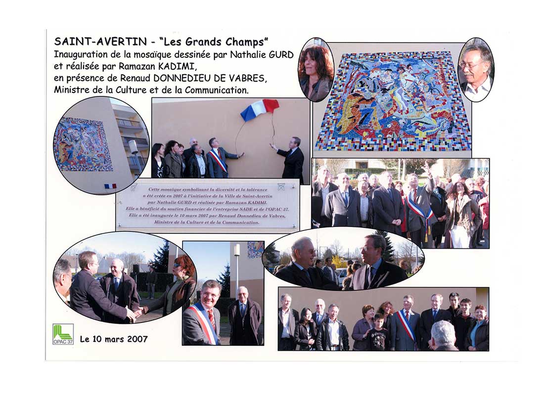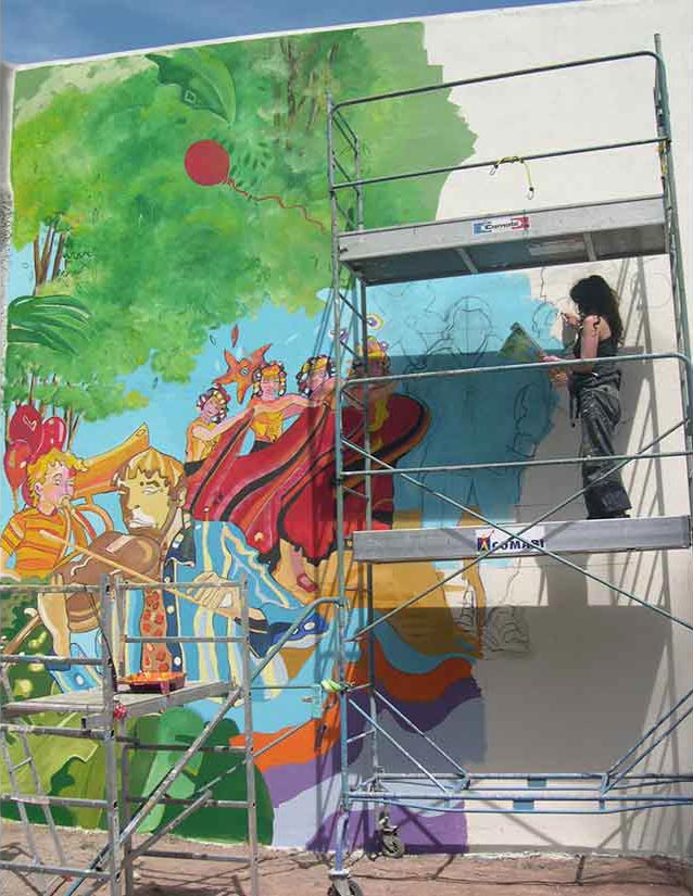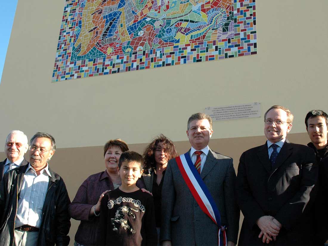 Étude Dessins Création Décors en extérieur. Fresque et Mosaïque sur un mur de l’O.P.A.C. Réalisation avec MR KADIMI.