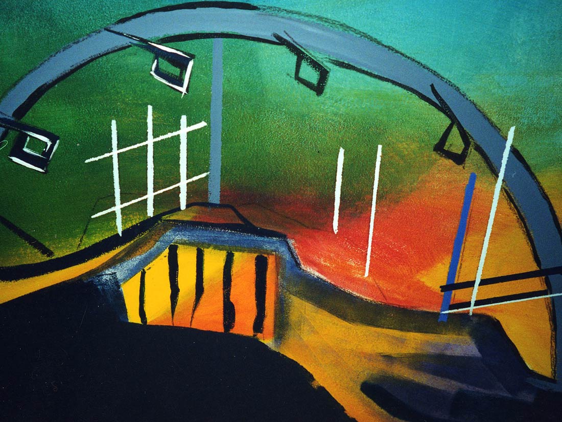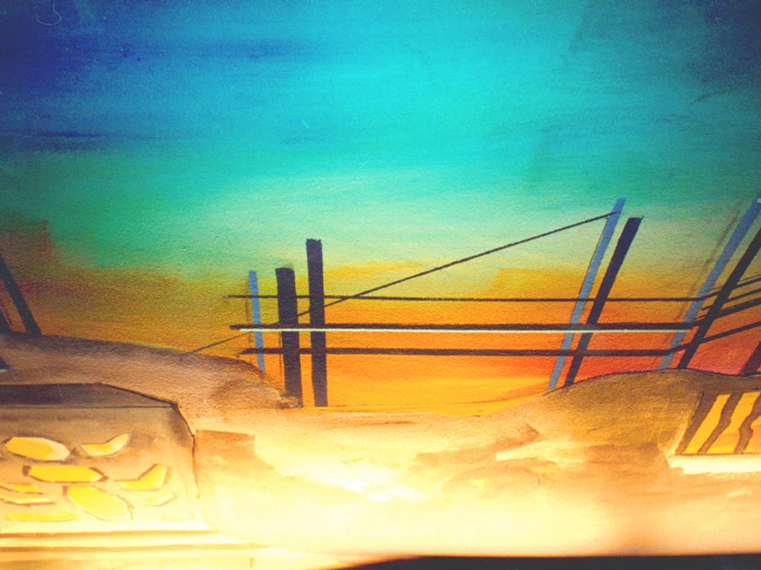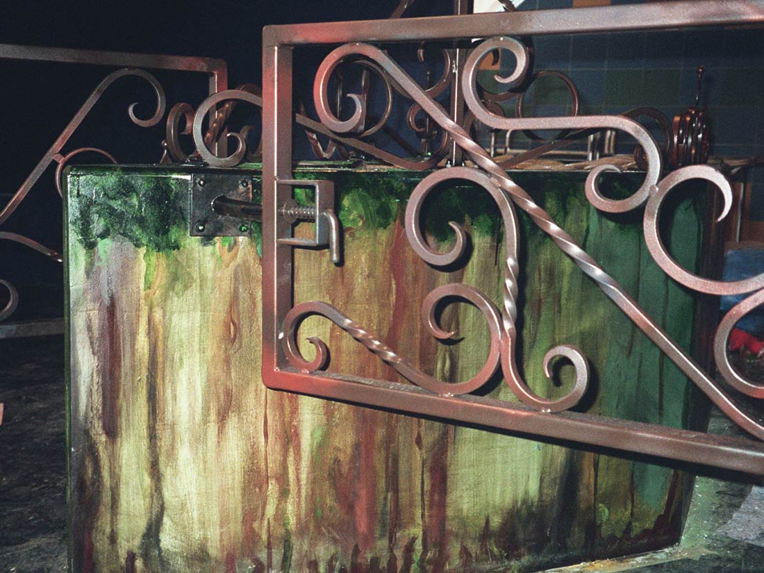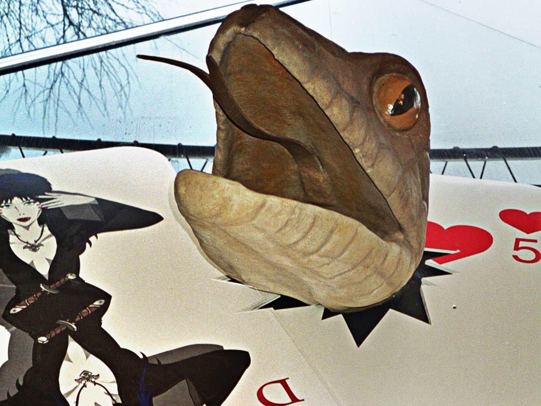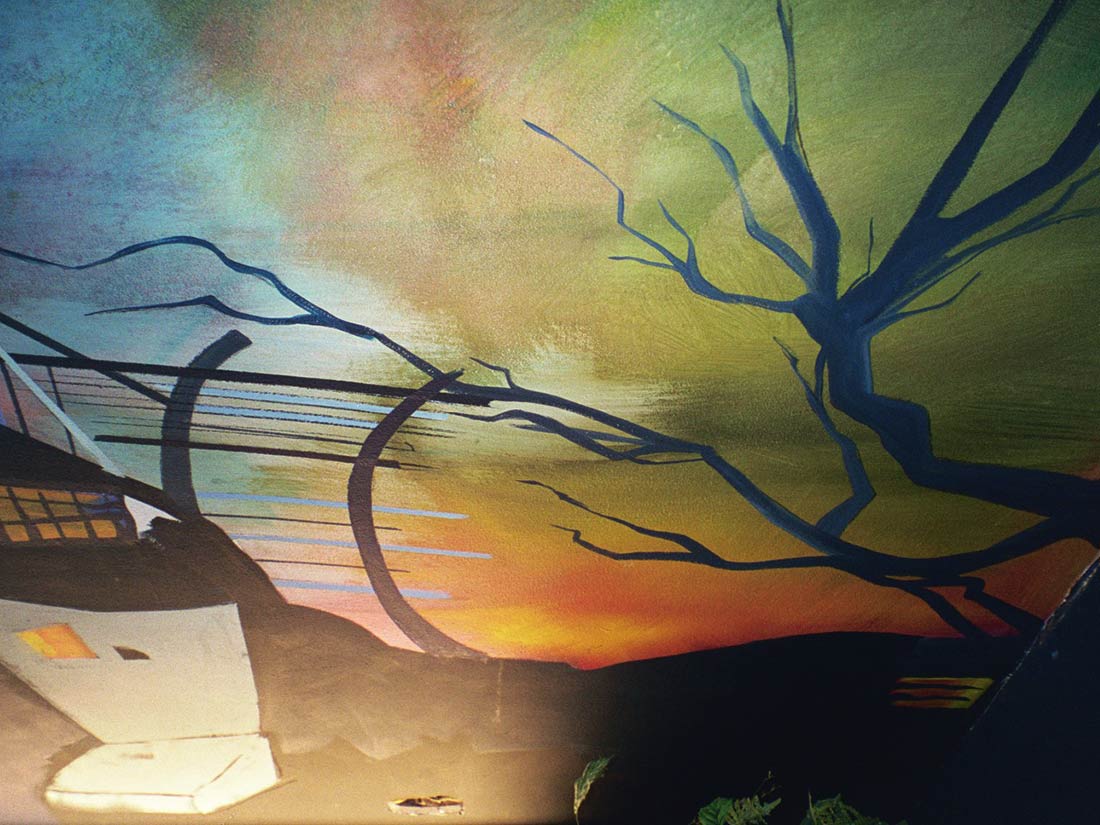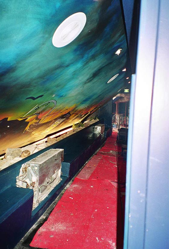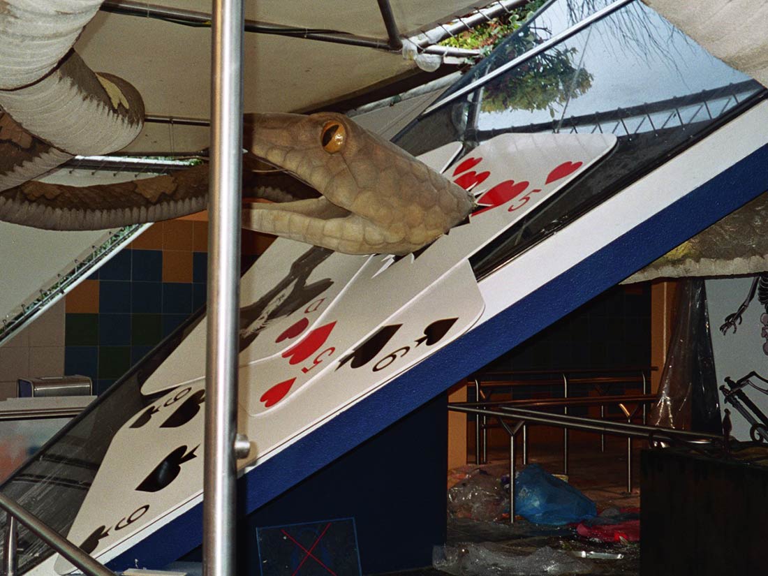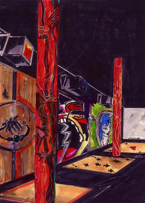 Réalisation décors et fresques d’après projet d’architecte. Cinéma thème Elvira, gardes-corps, mosaïque, jeu de carte PVC. Espace extérieur et intérieur.