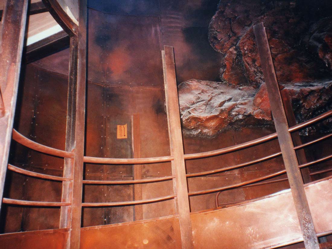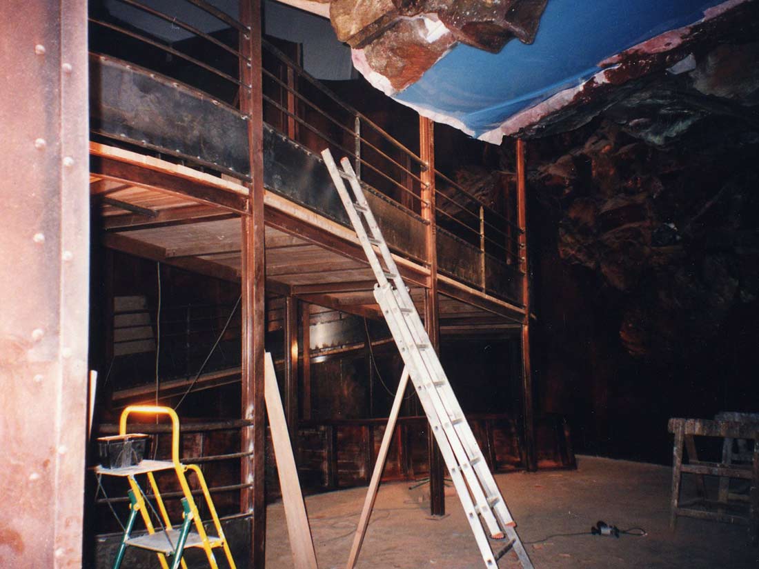 Étude, conception et réalisation d’un décor « Jules Verne ». Mur d’images, espace cabines et caisse centrale, agencement de la façade.