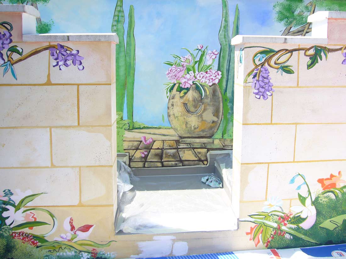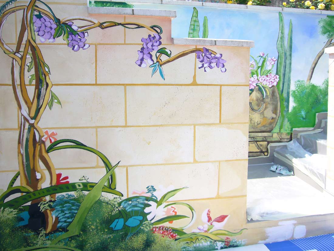 Étude Réalisation Fresque en extérieur dans Jardin privé.